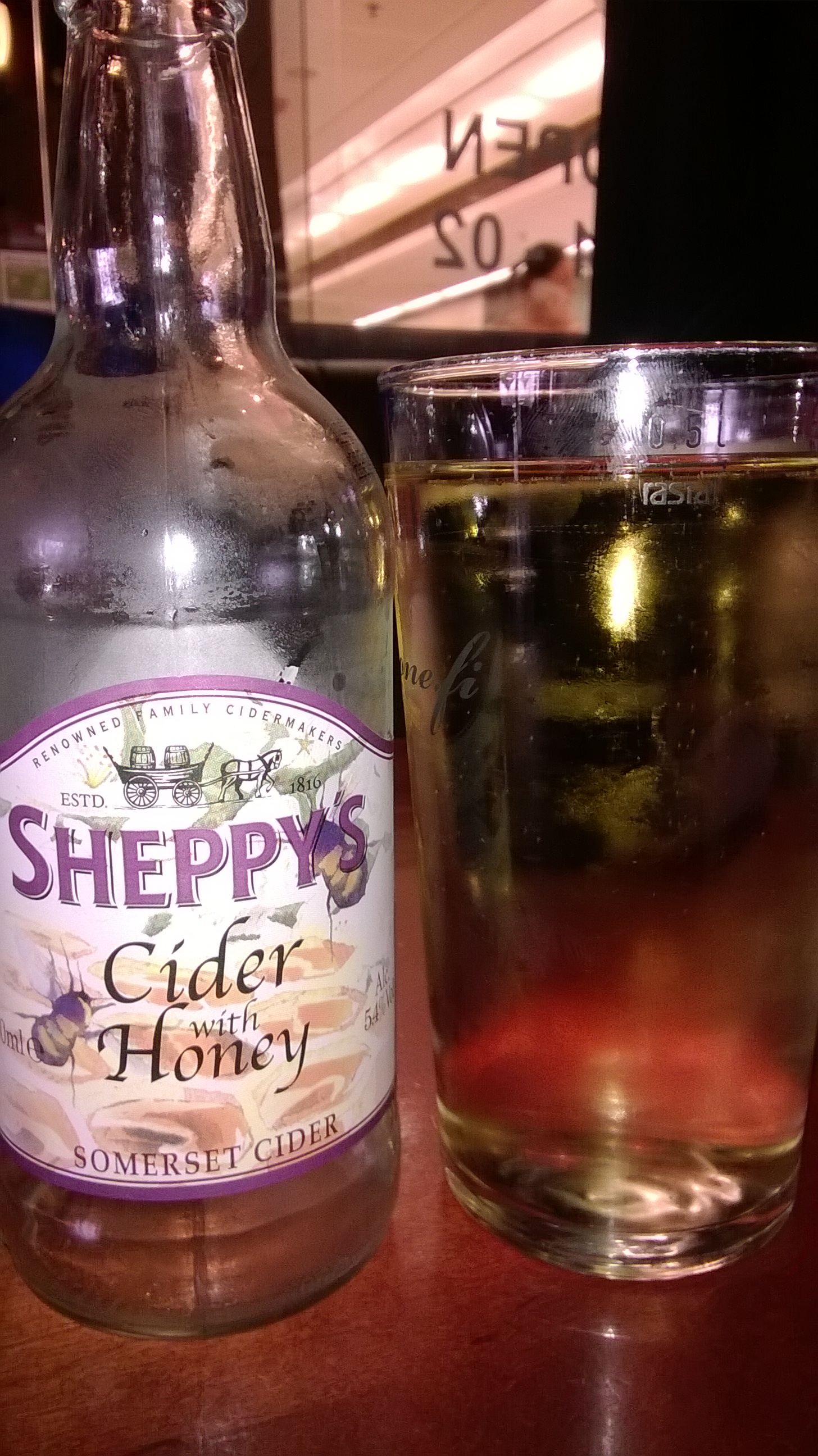 Helsingissä ensimmäinen tankkaustauko oli Kampin Rotterdamissa, missä Ummikko M tyytyi vanhaan suosikkiin, Fuller’sin London Porteriin, joka on porterien aatelia ja muutenkin aivan loistava olut. Ummikko N pysyi siiderilinjalla, ja festivaalitarjonnasta tuoppiin kaadettiin Sheppys’in Cider With Honey; Sheppy’siltä Alkon perusvalikoimaan kuuluu kuivaakin kuivempi siideri, joten oli lievän yllättävää kun tämä melkein värittömän kalpea ja kevyesti poreileva siideri paljastui hyvinkin makeaksi ja kevyeksi, vaikka tietenkin hunaja ainesosana vähän sitä enteili. Hunaja dominoi maussa, vaikka makeaa omenaakin oli aistittavissa. Jälkimakukin oli ehdottoman hunajainen. Hunajan maku ei kuitenkaan liikaa dominoi, ja pohjalla on juuri sen verran omenaa että juoman tunnistaa siideriksi. Tuttavuutena hiukan kummallinen, muttei ollenkaan epämiellyttävä ja oikein helppo juoda. Ihan täysi napakymppi kyseessä ei ole, mutta kuitenkin ehdottoman ammattitaitoisesti ja hyvin tehty siideri.