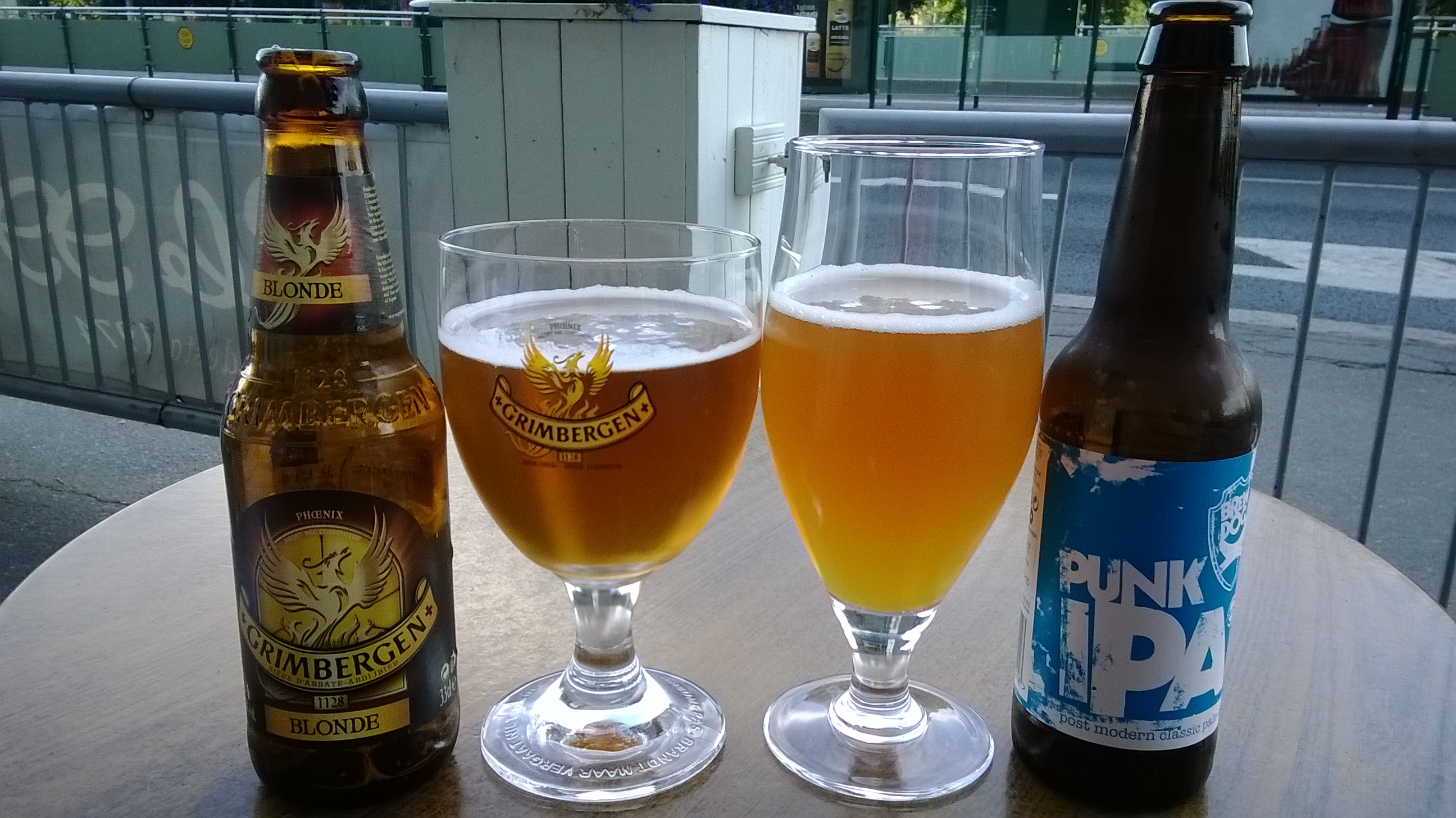 Lintsin jälkeen aikomuksemme oli suunnata Mannerheimintiellä sijaitsevaan Bar Fellowsiin nauttimaan muutamat ennen ruokailua, mutta ikävä kyllä ko. anniskeluravintola oli kesälomalla, joten suuntasimme samalla kadulla melkein naapurissa olevaan Pub99:in terassille, jossa oli tarkoitus ottaa ”vain yhdet”. Kuuluisia viimeisiä sanoja, sano. Ensimmäisen kierroksen juomat olivat Grimbergenin Blonde ja BrewDogin Punk IPA. Grimbergenin vaaleaverikkö on hyvin hedelmäinen, tai pikemminkin marjainen, raikas ja makea, jopa siiderimäinen tapaus: siinä on melkeinpä prikulleen samaa kirsikkaista marjaisuutta kuin Etelä-Afrikkalaisessa Savanna Dry-siiderissä, mutta tarpeeksi karamellisoitua mallasta ja kevyttä humalaisuutta jotta tämän sokkonakin tunnistaisi olueksi. Punk IPA taas on melko tyypillinen jenkki-IPA (vaikka brittiläinen onkin), eli greippimäisen hedelmäinen, humalan dominoima melkeinpä karvas juoma. Oluen lievästä tunkkaisuudesta ja sameudesta huolimatta se on erittäin helposti juotava, raikas ja virkistävä. Molemmat olivat siis hyvinkin sopivia Lintsinjälkeiseen chillailuun terdellä, mutta näiden jälkeen oli pakko suunnata sisätiloihin, sillä Manskun liikenteen möly ja hajut eivät sopineet tunnelmaan.