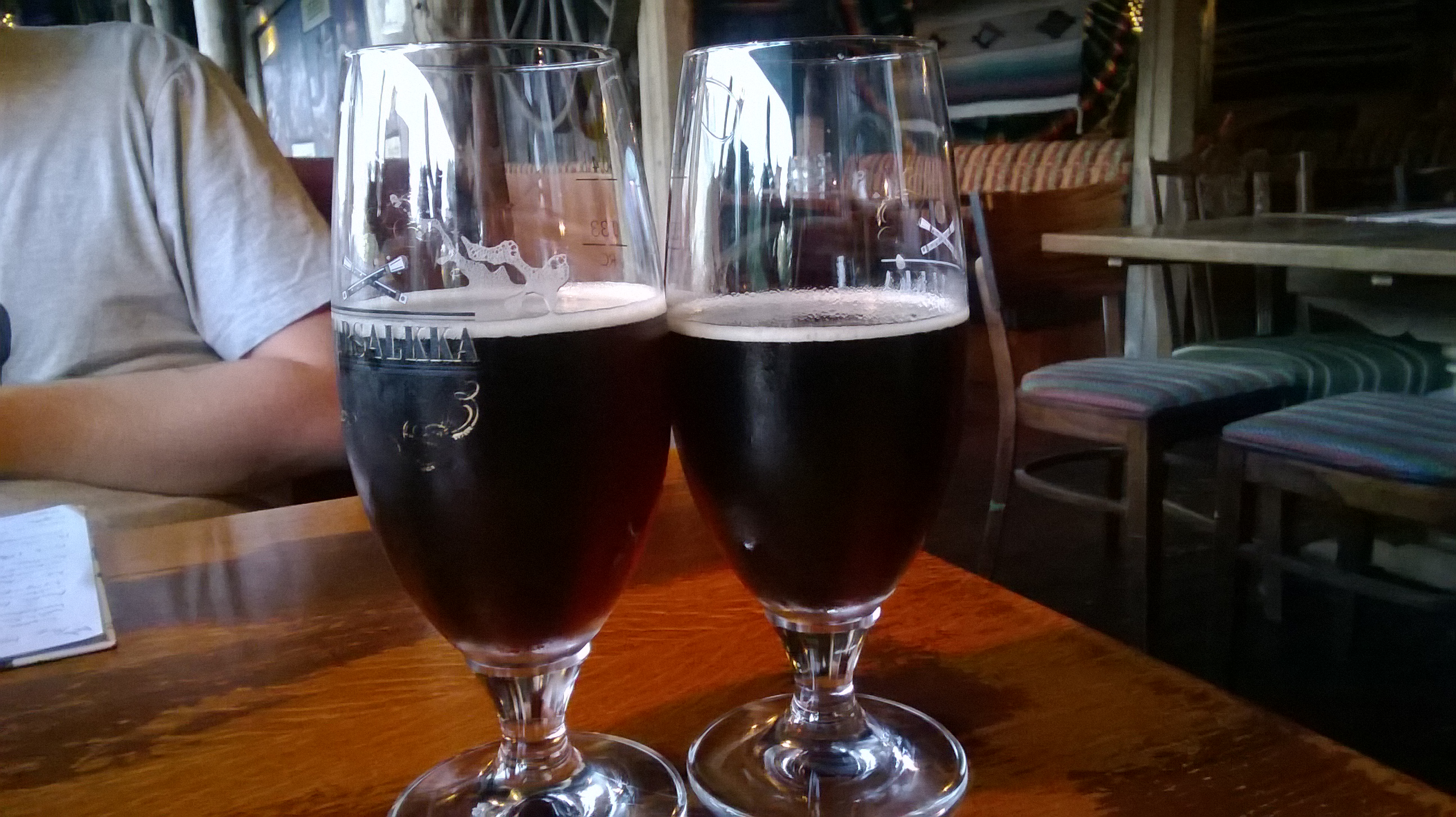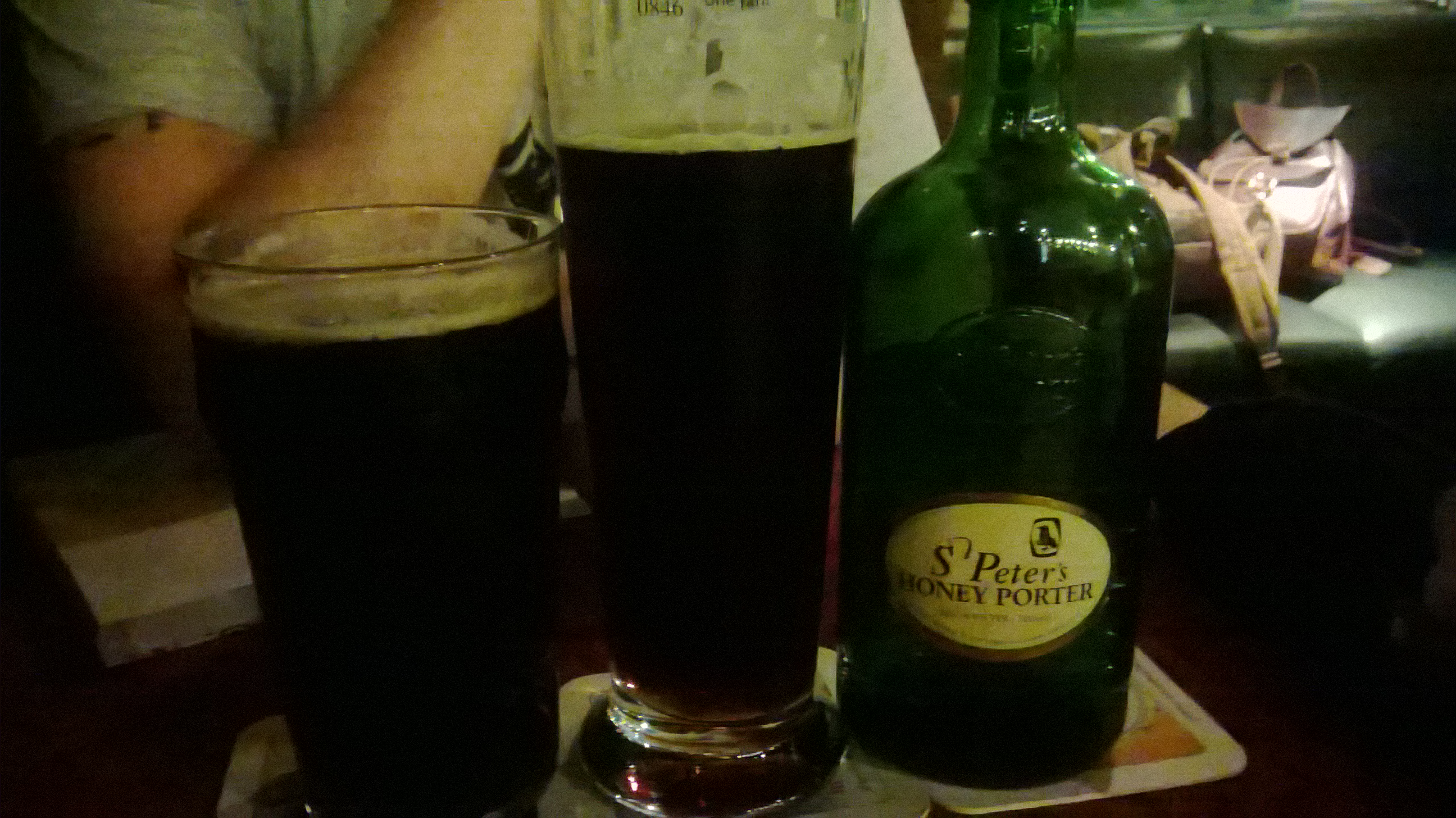 Illan viimeinen etappi oli St. Urhos-pubi, jossa pysyttelimme tummassa linjassa: St. Peter’s Honey Porter ja Malmgårdin Huvila X-Porter. Tässä vaiheessa väsymys oli jo kova, ja mahat jo kovin täynnä, joten emme kovin syvällisesti jaksaneet juomiin perehtyä. Pyhä Petsku tarjoili todella omalaatuisen kokemuksen ällömakeaa hunajaa paahdetumman oluen rinnalla, josta emme oikein osanneet päättää mitä mieltä olimme, kun taas X-Porter oli melko tavanomainen mutta ihan hyvä.