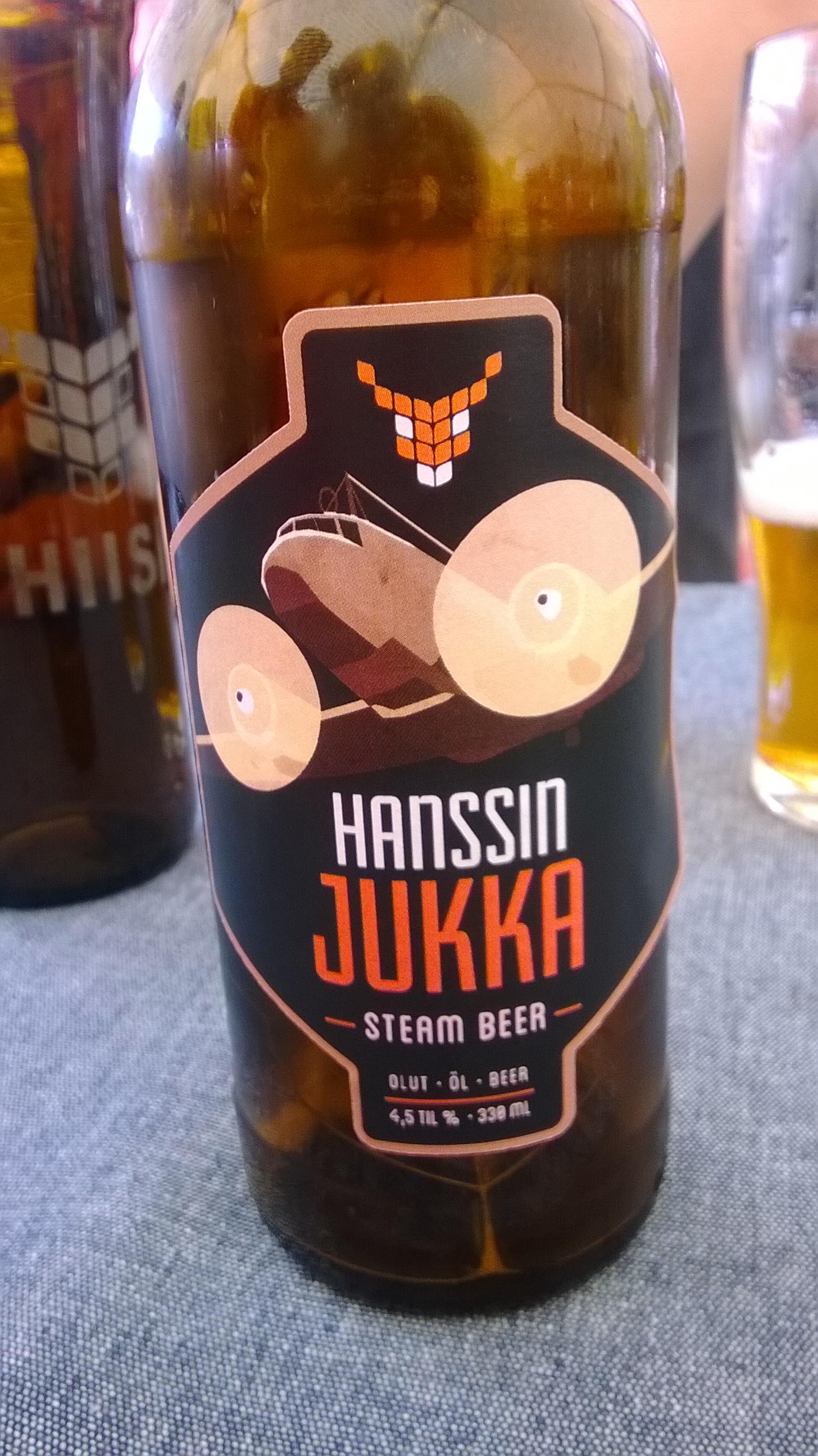 Eräs tärkeimmistä nimistä listallamme oli Hanssin Jukka, Panimoyhtiö Hiisin höyryolut (l. steam beer); jo mainittu Kaksi Kotia Choco-Cherry oli muuten Rekolan Panimon ja Hiisin yhteistyön tulos. Hanssin Jukalla oli mielenkiintoinen, harvinaisen rasvainen tuoksu, joka oli miedonpuoleinen mutta josta silti aisti selvästi hedelmää, humalaa ja kermaa. Maultaan Hanssin Jukka toi mieleen hapokkaan lagerin, jossa on tavallista lageria enemmän humalaa ja hedelmää. Makukin oli kuitenkin melko mieto, ja juoman keveys toi etäisesti mieleen tietyt APA:t. Helppo, kevyt ja helposti juotava uusi tuttavuus.