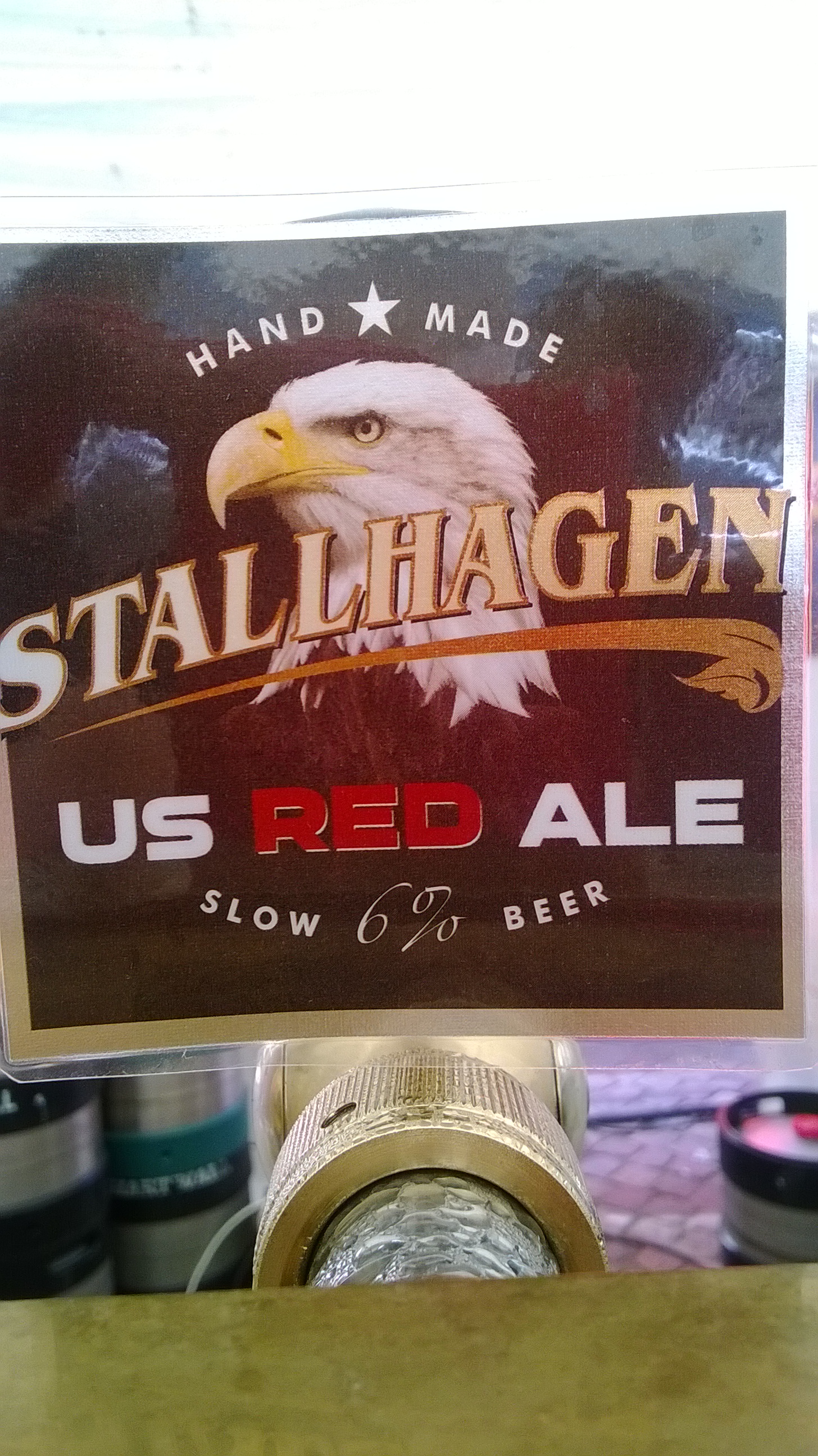 Mutta mitkäs ne olutfestarit ovat, joissa ei isketä kirvestä kiveen ainakin kerran? Tällä kertaa kiven tarjosi Ahvenanmaalainen Stallhagen Blueberry Alellaan, joka oli aikamoinen esanssi- ja markettilagerhybridihirvitys. Tuoksu vielä menetteli, laihan lagermaisuuden päällä aavistuksen esanssista mustikkaa, mutta maku menikin sitten päin (marja)metsää pahemman kerran: maultaan todella vetinen ja valju, jossa eniten ihan perusmarkettilagerin mitäänsanomatonta makua. Tämän päälle on sitten pultattu melko heikosti istuvaa, esanssista mustikkamaisuutta, ja epämiellyttävä lopputulos muistuttikin Saimaan Juomatehtaan Marsalkka Luomukarpalo -hirvitystä. Ehdottomasti huonoin olut jota testasimme päivän aikana. Onneksi Stallhagen tarjoili myös ihan kelpo juotavaa tuopeistamme US Red Alen muodossa, jolla oli hiukan hintelän humalainen, kevyen metallinen, kevyesti maltaisen makeahko tuoksu ja humalapainotteinen maku, josta kuitenkin myös havaitsi helposti maltaista makeutta. US Red Ale olikin ihan hyvä, jonka takia emme langetakaan fatwaa Stallhagenin päälle.