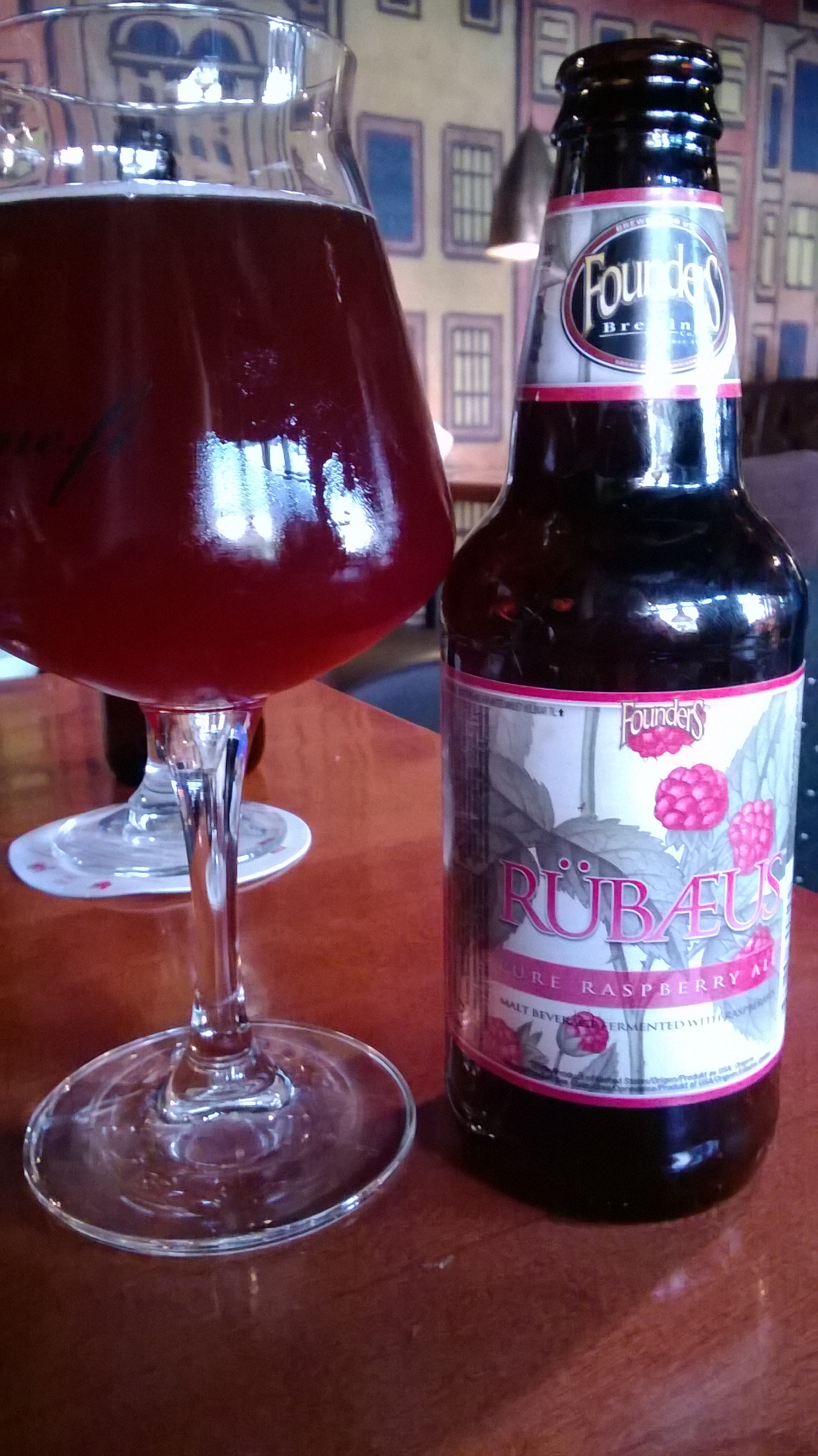 Toiseksi parivaljakoksi Rotterdamissa valikoitui Foundersin hedelmäolut/vadelma-ale Rübaeus ja vanha kuomamme, London Porter, josta ei sen enempää. Rübaeus oli olemukseltaan lambicmaisesti paksu, marjainen ja syvän punainen. Tuoksu oli kuin sokeroidulla vadelmamehulla, jossa lambicmaista happamuutta, ja makukin oli vadelmamehumainen: mausta juomaa ei olueksi tunnistaisi, vaan voisi kuvitella juovansa mummon itse pullottamaa vadelmamehua. Rübaeus oli helposti juotava ja maistuva, mutta rupesi myös jo yhden tuopillisen aikana tökkimään. Tuttavuutena mielenkiintoinen, mutta tokkopa olut jota tulee uudestaan testattua.
