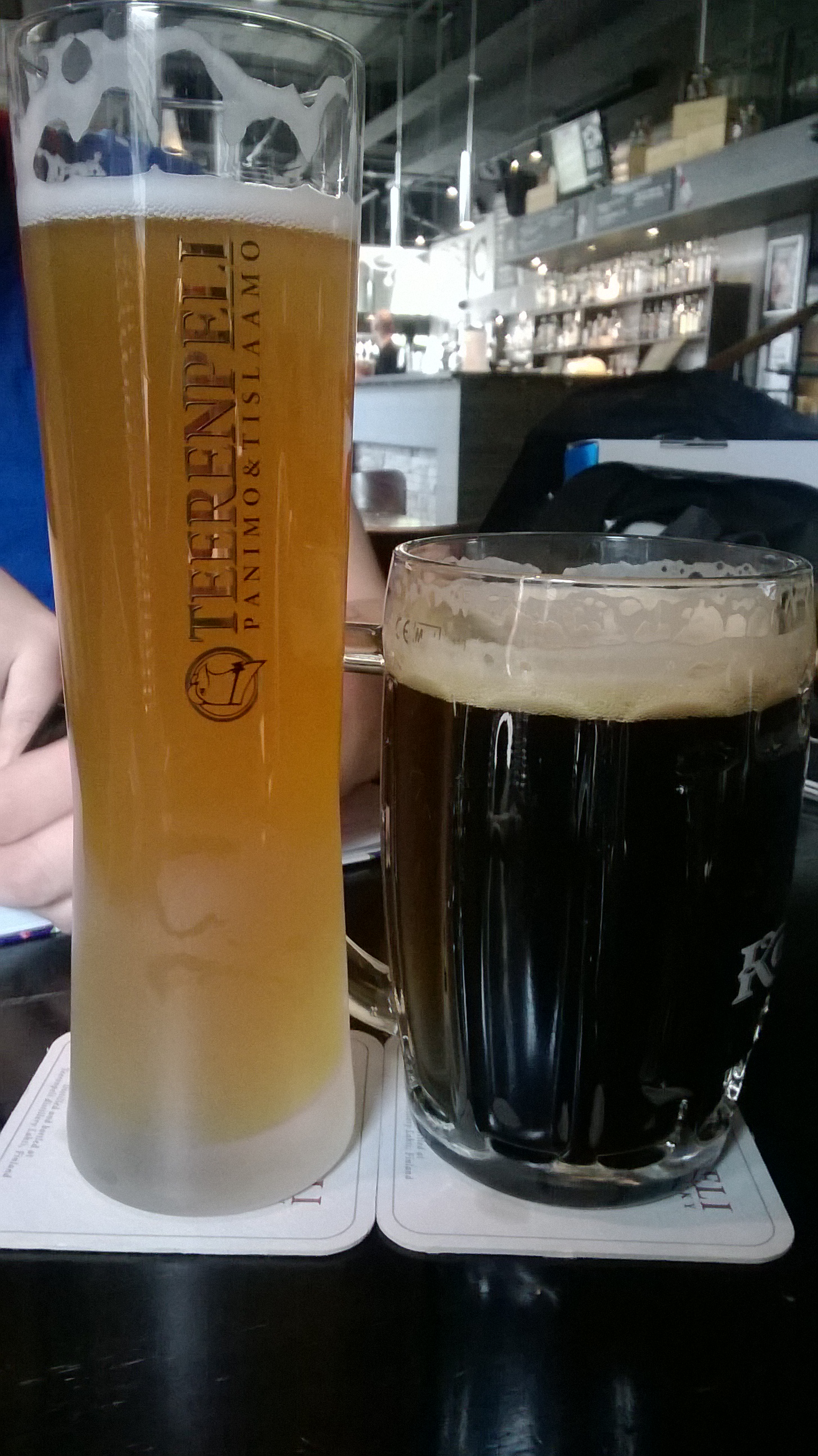 Melkein naapurissa olevassa Teerenpelissä joimme niinikään kahdet oluet. Ensimmäinen satsi oli entuudestaan tuttu Young’s Double Chocolate Stout, joka on vieläkin aivan loistava olut, sekä Weihenstephaner Hefe-vehnäolut. Weihenstephaner on oikeastaan täysin tyypillinen saksalainen vehnäolut johon pätee yleiset kliseet vanukasmaisuudesta, banaanimaisesta tuoksusta ja mausta, jne. Ihan hyvä vehnäolut, helppo ja virkistävä tämäkin.