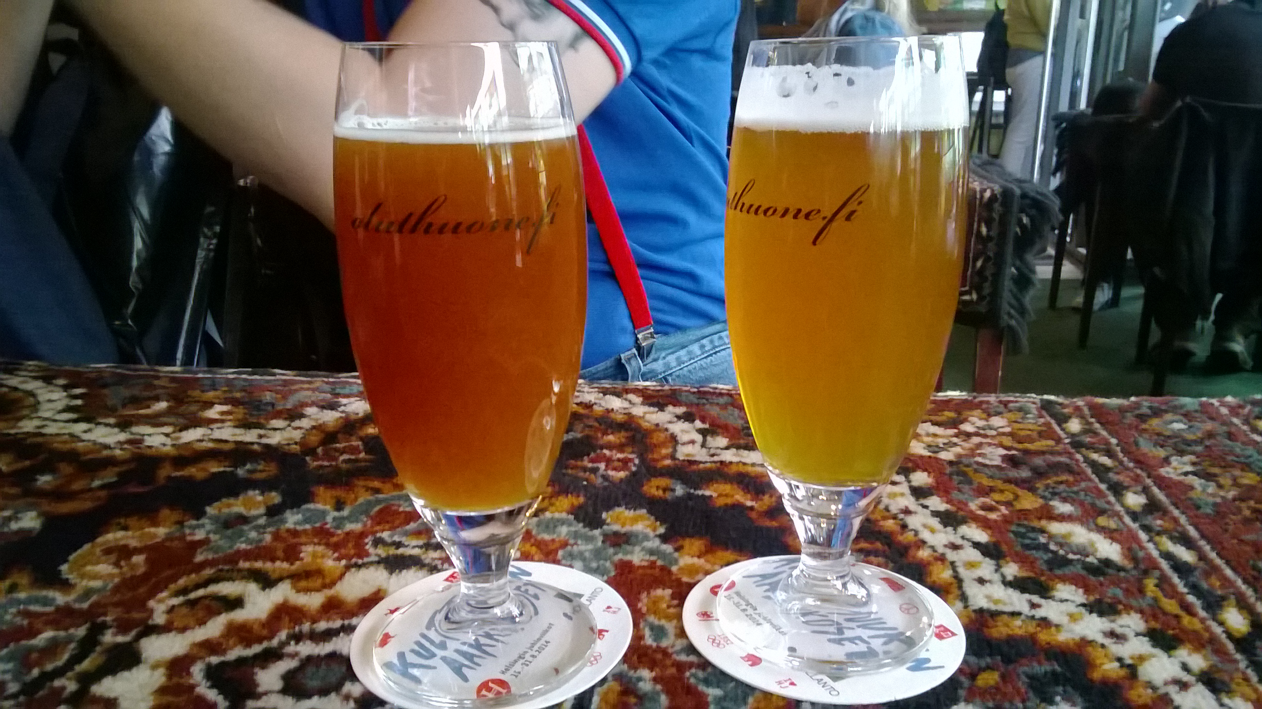Aina välillä perheellistenkin on hyvä päästä tuulettumaan. Mekin siis päätimme lähteä nauttimaan korkeakylttyyriä kun muksu meni yöksi hoitoon, eli Sylvester Stallonen, Arskan ja monien muiden tähdittämää, suorastaan luokattoman huonoa Expendables 3:sta. Kaksi ekaa olivat ihan viihdyttäviä, tämä kolmas oli vain umpisurkea. Hyh hyh. Mutta ei siitä sen enempää, vaan pikaisia huomioita päivän aikana nautituista oluista…