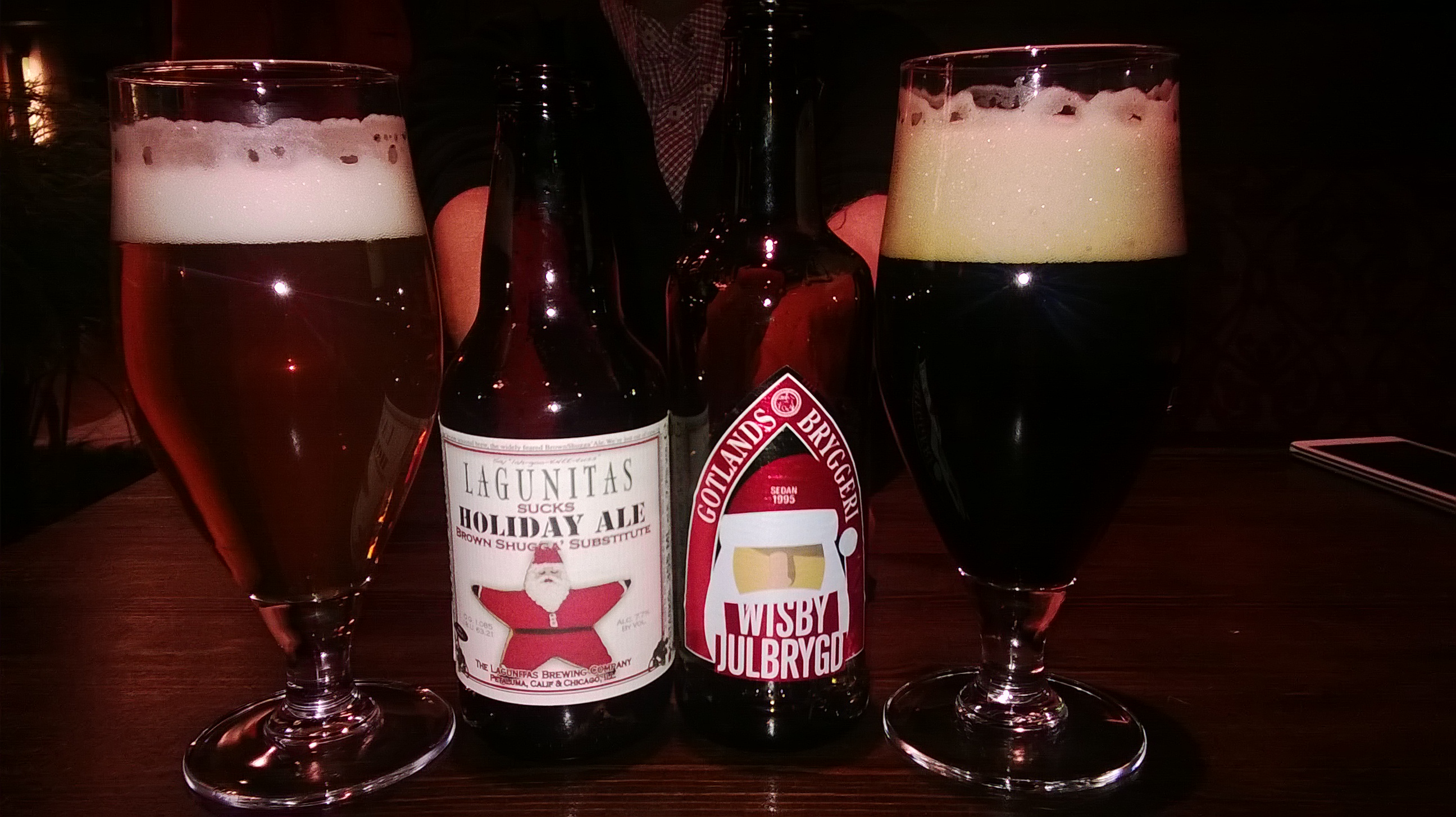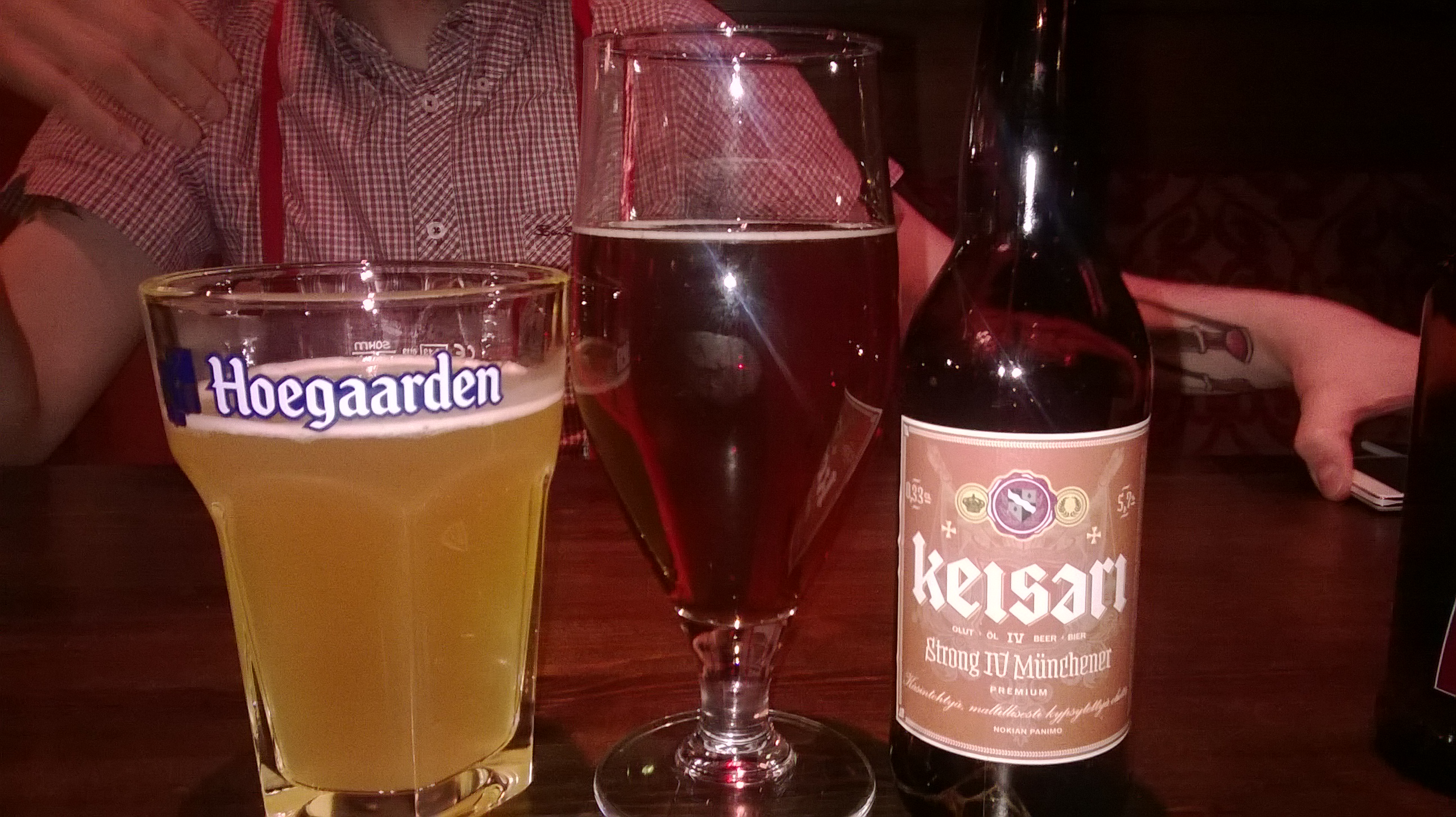 Lopuksi piipahdimme vielä Jyväsessä yömyssyllä. Jo hyvin huvenneelta jouluolutlistalta poimimme Wisbyn Julbrygdin sekä Lagunitaksen Lagunitas Sucks Holiday Alen. Wisbyn jouluolut oli nätisti vaahtoava melko tumma tapaus, jonka tuoksussa oli hunajaista maltaisuutta. Maku oli vaaleampi kuin oluen olemus, ja mausta tulikin lähinnä mieleen APA oluen humalapainotteisuudessa. Lagunitas taasen oli vaalea, mutta tuoksultaan hunajainen, pihkainen ja jotenkin jouluinen mustaherukkamaisessa tuoksussaan. Maku oli makeaa tuoksua karvaampi, aavistuksen tyrnimarjamainen, ja marjaisuus oli muutenkin kylmää ja karvasta. Molemmat olivat OK-tasoa, mutteivät sen parempia. Tämän jälkeen tuoppiin kaatui Hoegaardenia (josta ei sen enempää) sekä Nokian Panimon Keisari Müncheneriä, joka oli melko brown alemainen tummahkon maltaisessa tuoksussaan ja soraisen maltaisessa maussaan… ei mikään ikimuistoinen olut.