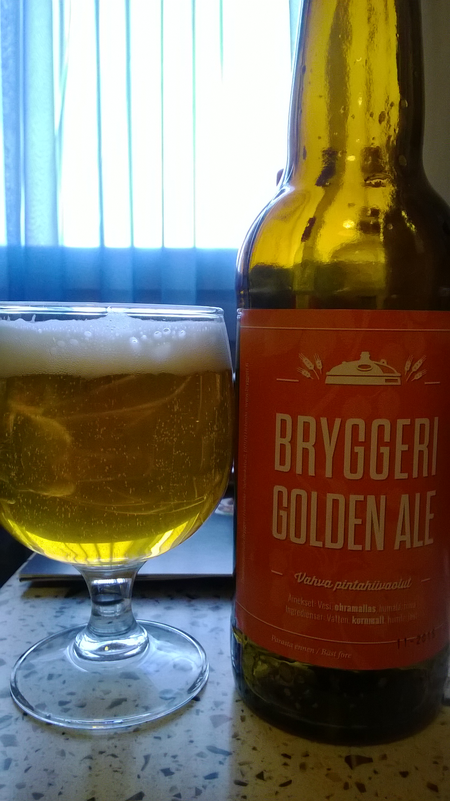 Bryggerin Golden Ale oli olemukseltaan oljenkeltaisen kalpea, mutta vaahtosi kauniisti jättäen pysyvähkön vaahtokukan ja reilusti pitsiä lasin reunoille. Tuoksu oli appelsiinimaisen humalainen johon ajan myötä kehittyi kuivaa hiivaa, mukana myös greippisyyttä mutta mallasta hyvin heikosti. Maku melko katkeroisen humalainen ja alkuun vähän yksiulotteinen, mutta ajan myötä pientä vaihtelua tuo appelsiini. Loppujen lopuksi humalapainotteinen Golden Ale oli vähän tylsä mutta ihan pätevä.