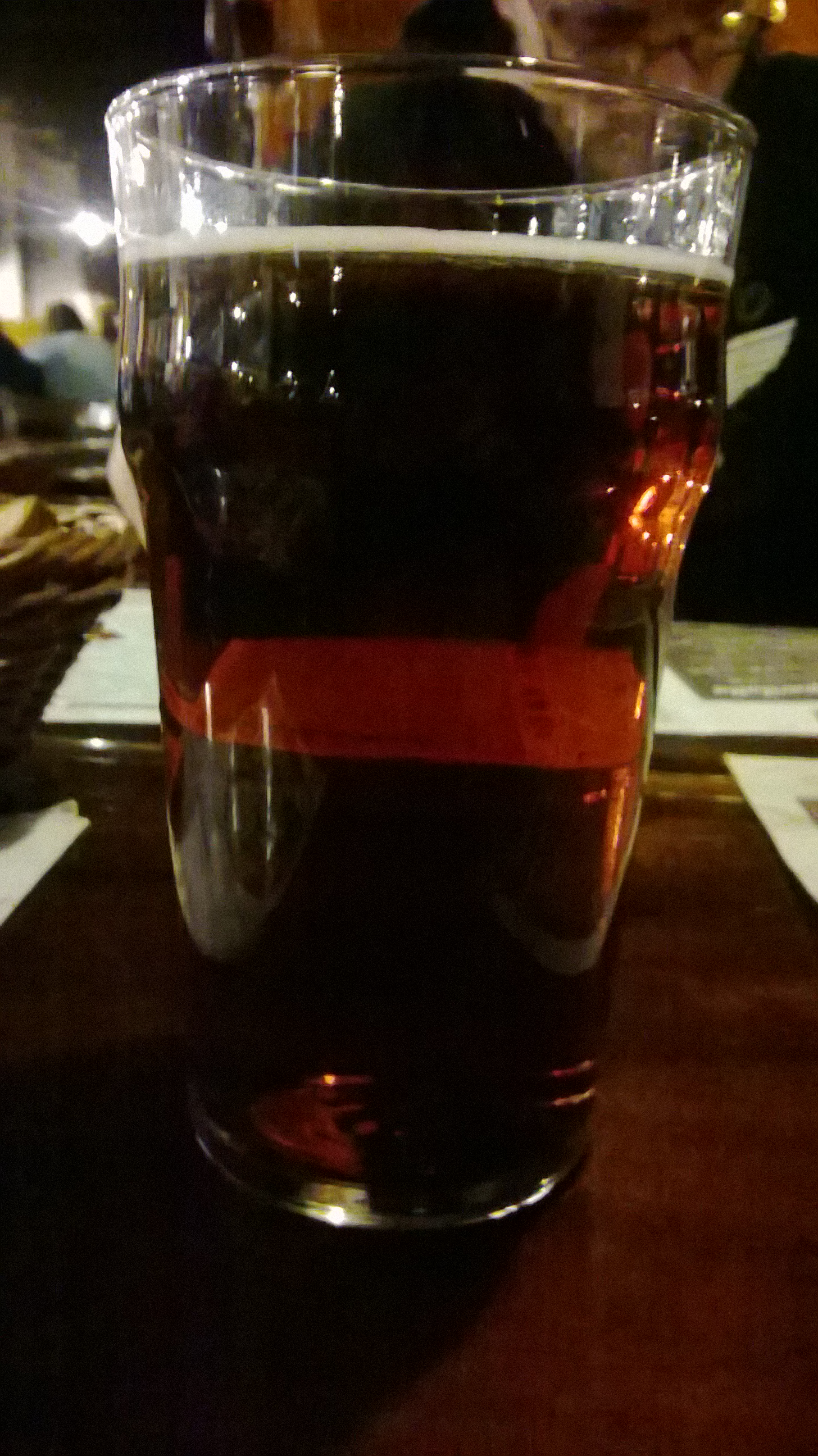 Tällä kertaa ruuan kanssa päädyimme kokeilemaan kausiolutta, Cupido American Alea. Tuoksultaan sokerisen makea, hattaramainen ja jotenkin läpeensä vaaleanpunainen olut: kevyttä humalaa ja ällömakean karamellisoitua mallasta. Maku aavistuksen ohut sekä hyvin makea ja sokerinen, miedon humalainen ja kevyttä ylimakeaa mallasta. Ylimakeudessaan hiukan outo muttei huono, joskin pieni soramainen vivahde sekä tuoksussa että maussa laskivat kokonaispisteitä.