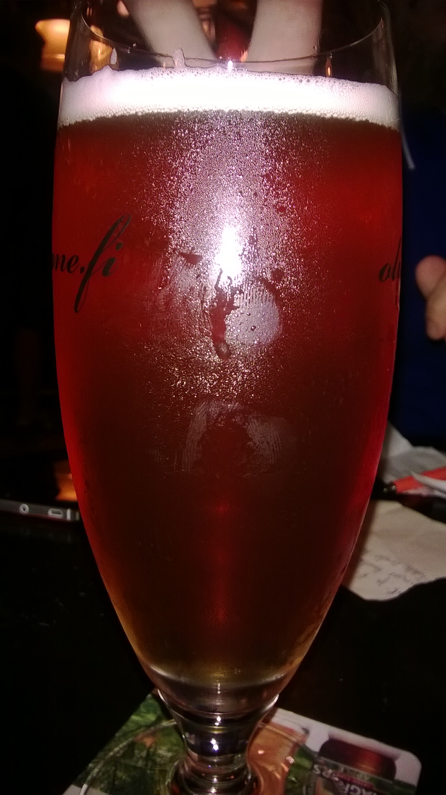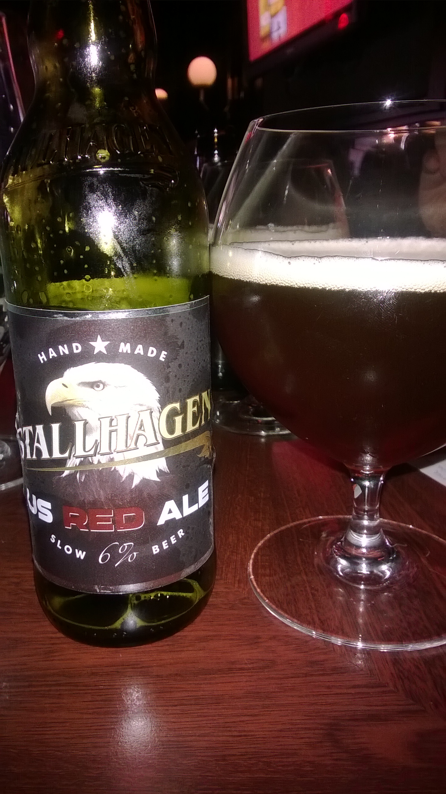 Parempien oluiden pariin päästiin Tax Free-shoppailun jälkeen laivan Captain’s Corner -ravintolassa, jossa oli pienehkö mutta ihan asiansa ajava erikoisoluiden lista. Aloitusjuomat olivat molemmat Stallhagenia: Baltic Porter ja US Red Ale. Porter oli tuoksultaan alkoholinen, terävä, kylmä, aavistuksen havuisa ja monella tapaa melkolailla Koffin Porterin kaltainen – eli hyvä. Maku oli paahteinen, rakeinen, kylmä ja aavistuksen salmiakkinen. Mikään jymymenestys tämä ei ole, saatikka sitten Koffin melko mainion Porterin voittaja, mutta ihan asiallinen tumma olut kuitenkin. US Red Alessa tuoksui jenkkihumala, joskin melko miedosti, sekä aavistus soraista pähkinää. Maussa oli tuoksua enemmän pähkinää mutta myös humala oli läsnä kuivuutta korostamassa. US Red Alekin on ihan hyvä olut, joskin tylsänpuoleinen.