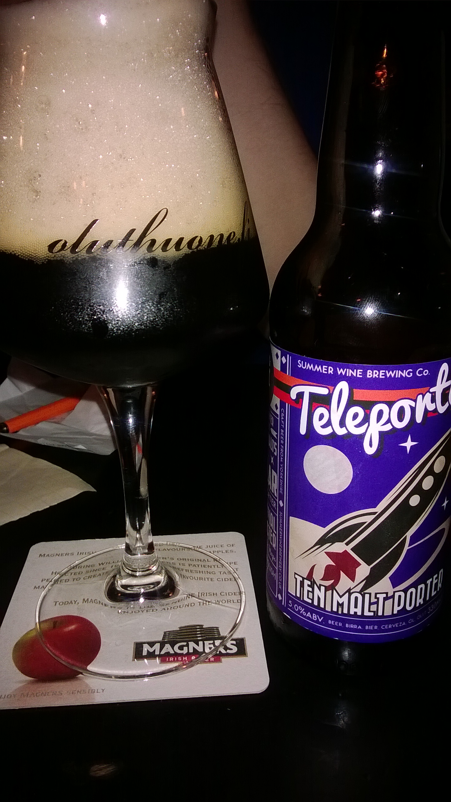 Paluumatkalla Ummikot poikkesivat vielä Angleterressä, lähinnä siksi että ovat usein miettineet että siellä pitäisi käydä. Pikaisen visiitin perusteella varsin mukava paikka jossa kohtalaisen laaja valikoima oluita. Listalta tuoppeihin joutui Bodebrownin Cerveja Curitiba Brasiliasta sekä Summer Wine Brewing Companyn vaahtovammainen Teleporter Porter. Curitibassa oli bittermäisen pähkinäisyyden alla kivaa hedelmäisyyttä, ja makunsa puolesta menisi muuten ihan IPAsta, mutta pähkinäisyys ankkuroi sitä perinteisemmän brittialen tai bitterin lokeroon. Ikävä kyllä pähkinäisyys oli tässä tapauksessa vähän tylsää, ja siten Curitiba ylsi lähinnä meh-tasolle. Teleporter Porter vaahtosi todellakin ihan hitosti liikaa, tyyliin Weird Beard. Tuoksu oli alkoholinen paahteisella tavalla, ja maku oli myöskin alkoholinen sekä ylimakea eikä totta puhuen erityisen hyvä. Näihin olikin sitten hyvä lopettaa ilta.