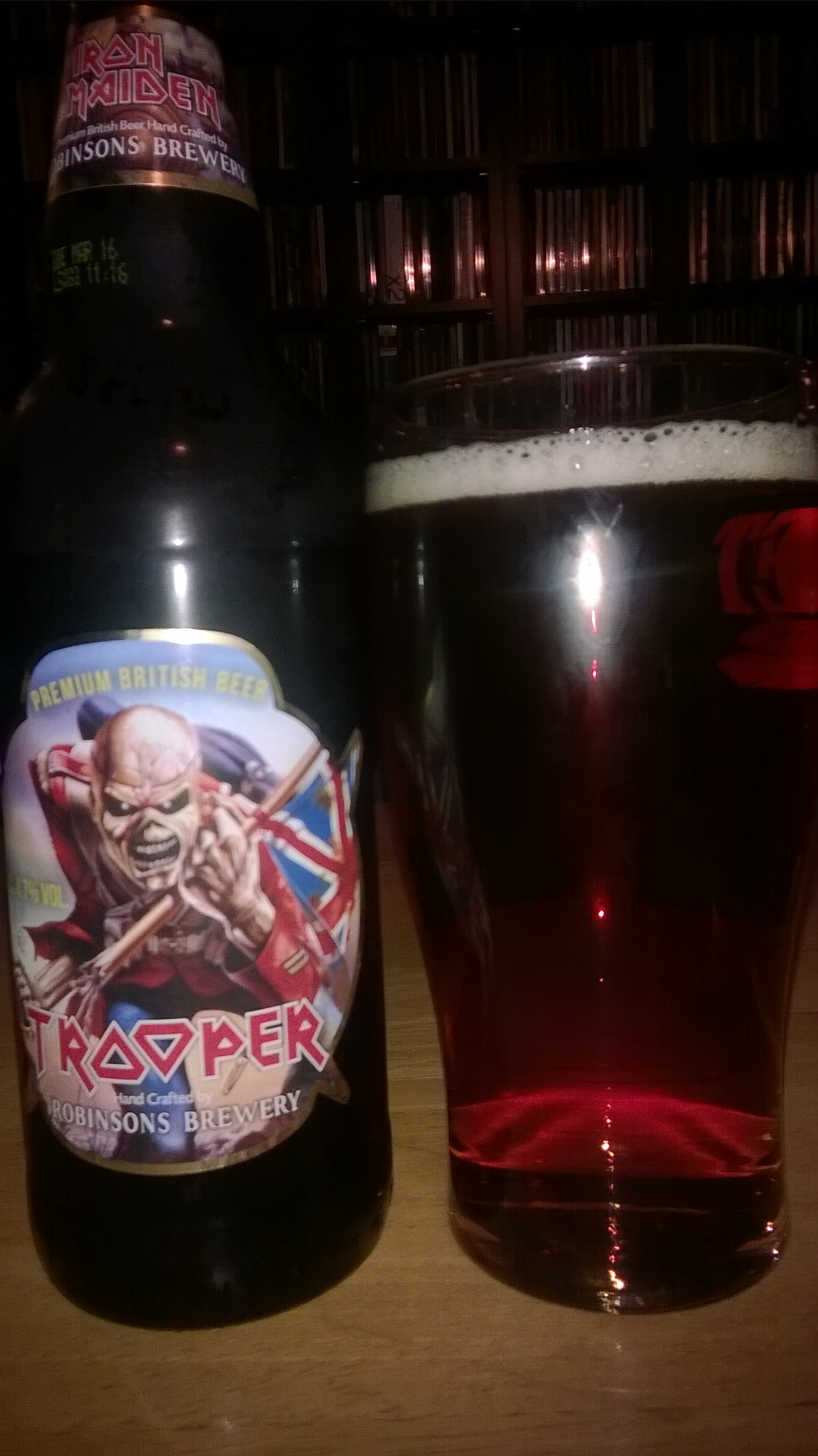 Viime vuosina markettien hyllyille on ilmestynyt useampikin bändiaiheinen olut: Iron Maidenin Trooperin ohella ainakin Motörhead-, Kiss- ja AC/DC-olutta saa melkein mistä tahansa marketista jossa on muuta kuin vain ja ainoastaan perusmarkettilageria, ja onpa muistissa jos nyt ei ihan tuoreessa sellaisessa myös Matti Nykänen- ja Linda Lampenius-aiheiset siiderit. Ja Leningrad Cowboys-olut! Yleensä nämä halvalla markkinointikikalla myyvät oluet ovat aivan yhtä turhaa kusivettä kuin mikä tahansa muu kehno lager ja mielenkiintomme niitä kohtaan on siten pyöreät nolla – mutta Trooperia Ummikko M maistoi kerran kun eksyi vähemmän hyvin varustettuun lähiökuppilaan, eikä pitänyt sitä ainakaan mitenkään katastrofalisen kauheana, joten nyt maistellaan sitä ihan kunnolla.